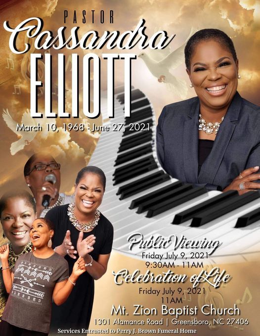 Memorial Service For Pastor Cassandra Elliott Mount Zion Greensboro 9 July 2021
